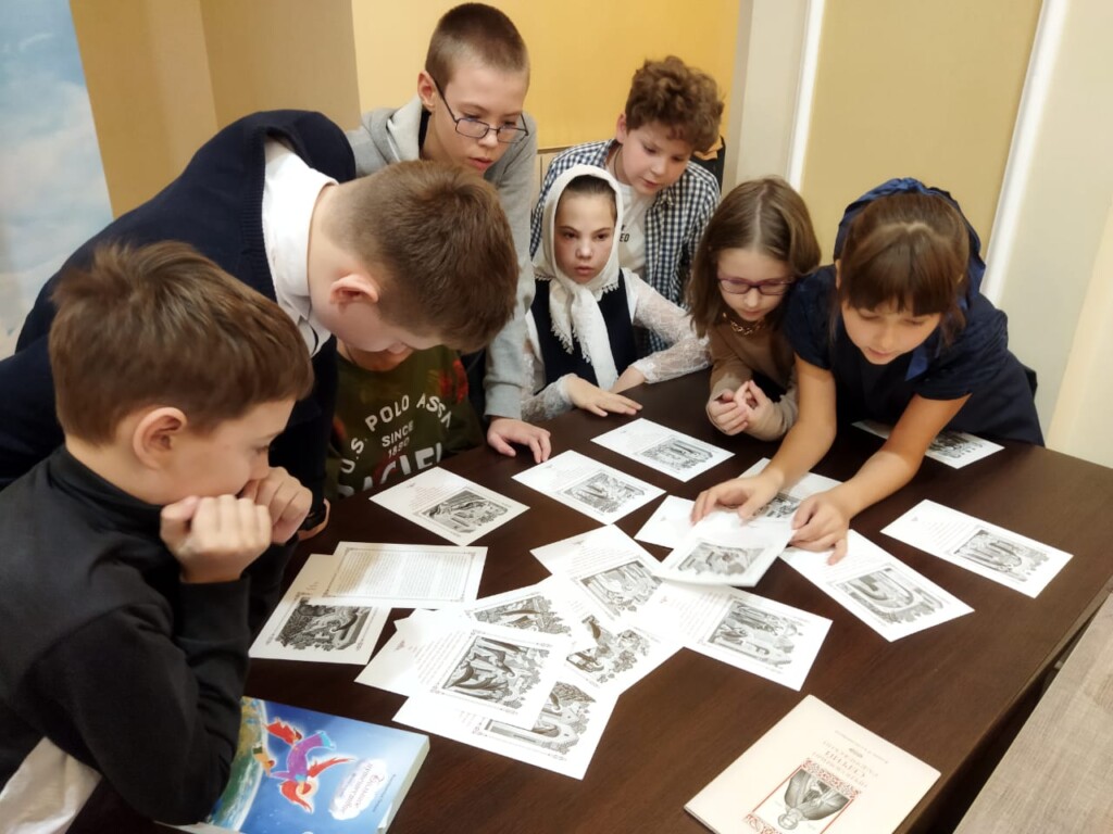 Помощник благочинного по религиозному образованию и катехизации, преподаватель воскресной школы Светлана Тюменцева рассказала детям о житии великого русского подвижника. Учащиеся по очереди читали самые трогательные моменты из книги Лидии Чарской «Один за всех», повествующей о святом преподобном Сергии Радонежском. Затем дети разделились на две возрастные группы и приняли участие в игре, составляя из иллюстрированных карточек в хронологическом порядке житие преподобного Сергия Радонежского.