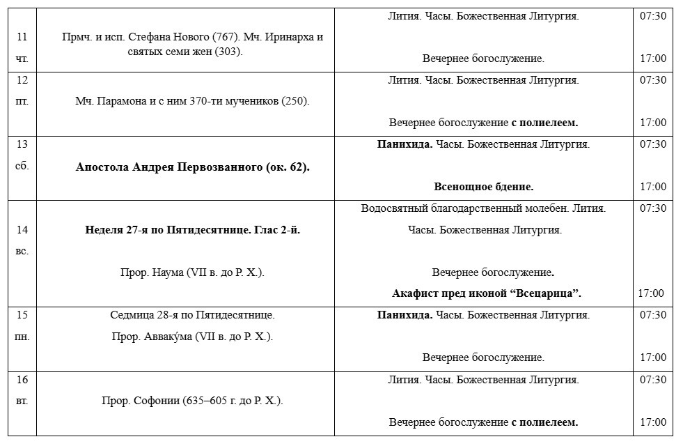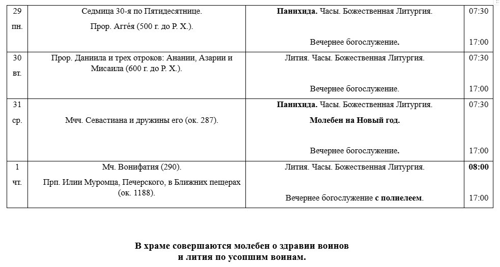 РАСПИСАНИЕ БОГОСЛУЖЕНИЙ В ДЕКАБРЕ
